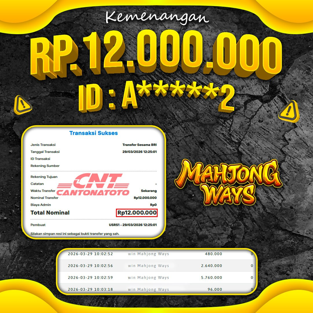 SELAMAT KEPADA MEMBER KAMI YANG BERHASIL WD BESAR HARI INI ???? BUKTI NYATA BAHWA KESEMPATAN SELALU ADA UNTUK YANG BERANI MENCOBA! JANGAN SAMPAI KETINGGALAN MOMENTUM GACOR HARI INI! ???? ❤️SEL4M4T KEPADA M3MB3R S3TIA CANTONATOTO ????TANGGAL : 29 MARET 2026 ????USER ID : A*****2 ????B0 : CNTT ????M3N4NG : MAHJONG WAYS ????RP. 12.000.000 ???????????????????????? : https://rebrand.ly/daftarcantona